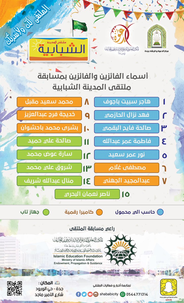 ملتقى المدينة الشبابية بجدة On Twitter أسماء الفائزين والفائزات في مسابقة ملتقى المدينة الشبابية برعاية مكتب الدعوة بالحمراء Iefalhamra