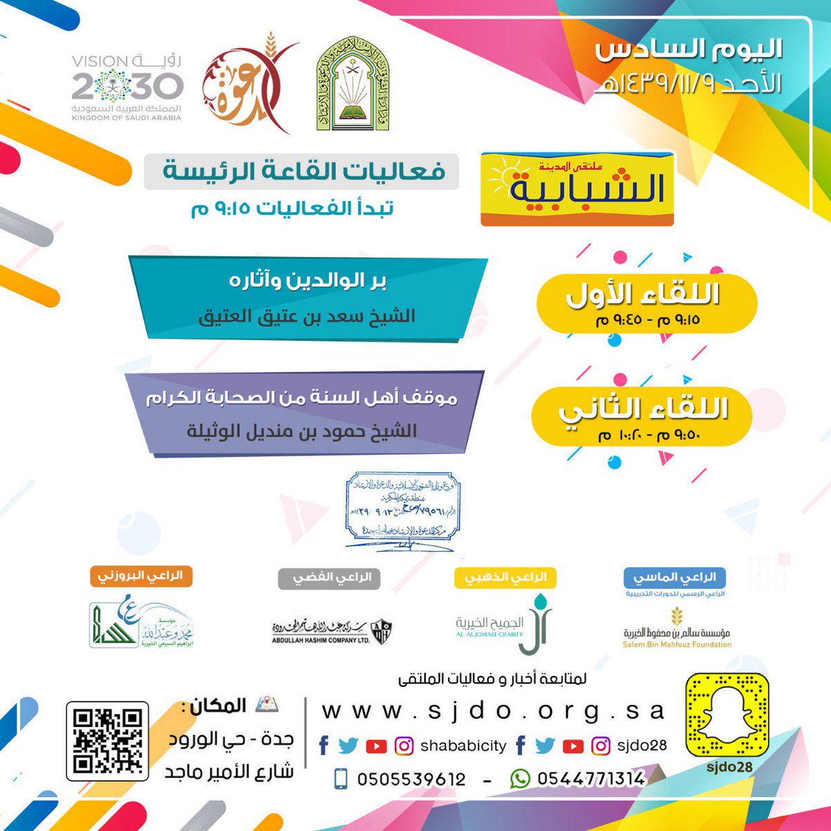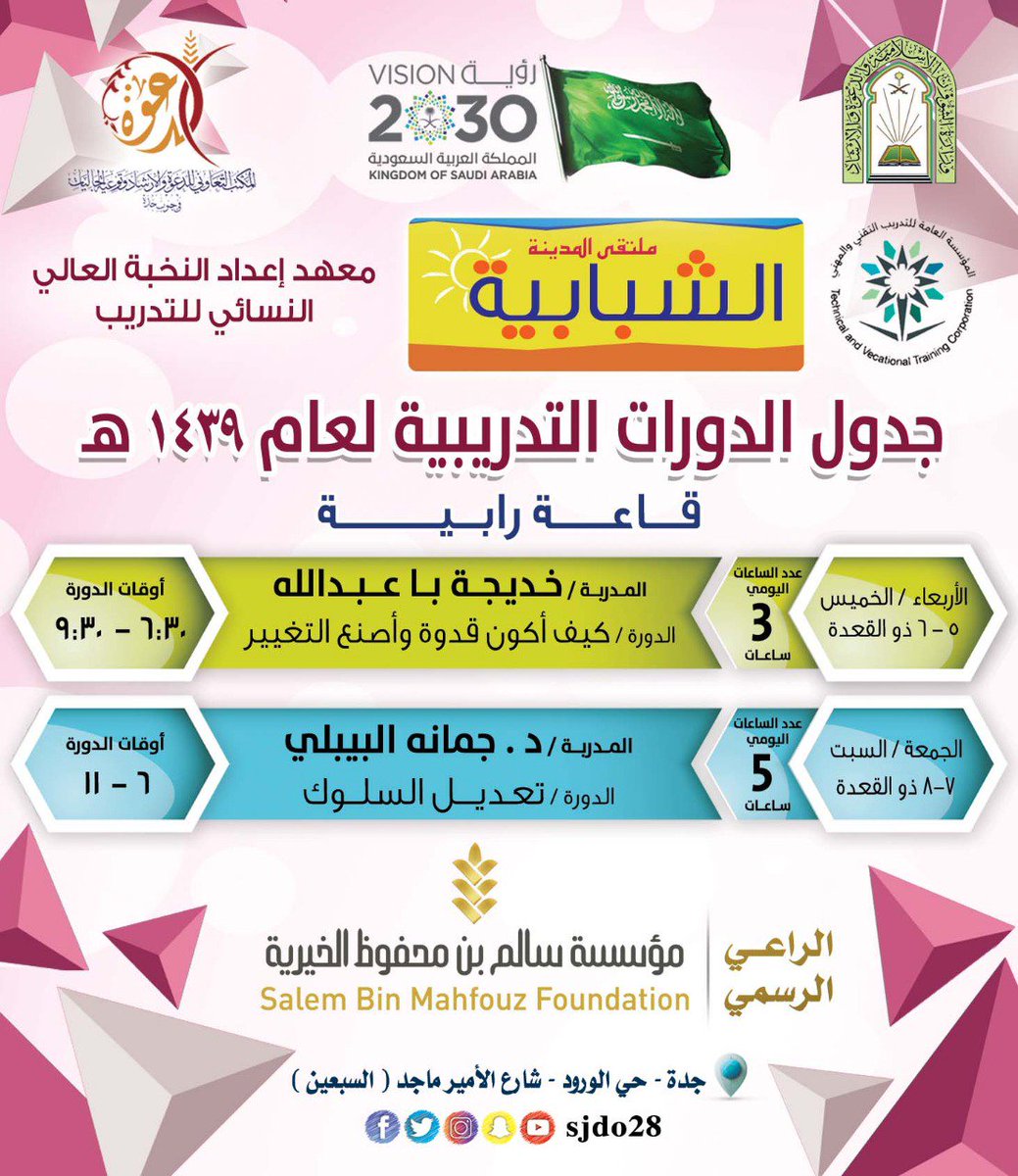 ملتقى المدينة الشبابية بجدة En Twitter فعاليات اليوم السادس الأحد ١٤٣٩ ١١ ٩ هجري ملتقى المدينة الشبابية البث المباشر لفعاليات القاعة الرئيسة Https T Co Ugriozn9oq Https T Co Whmlros0e2 رابط التسجيل للدورات التقنية والمهنية Https T Co