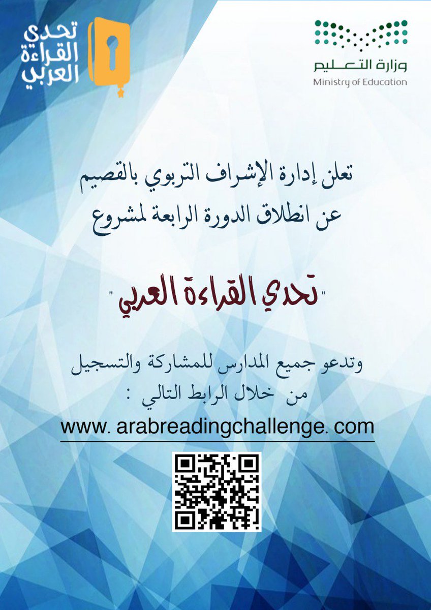 إدارة الإشراف التربوي بتعليم القصيم تعلن انطلاق مشروع تحدي القراءة العربي منتدى الإدارة العامة للتعليم بمنطقة القصيم بنين بنات