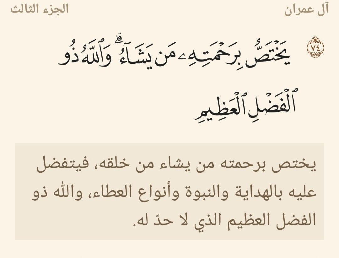 سهيل On Twitter يختص برحمته من يشاء والله ذو الفضل العظيم آل عمران 74