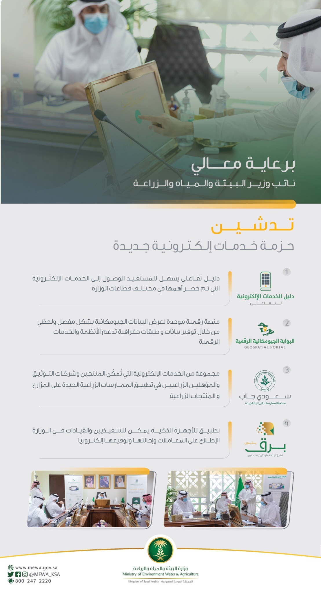 وزارة البيئة والمياه والزراعة On Twitter دشن اليوم معالي م منصور المشيطي نائب وزير وزارة البيئة والمياه والزراعة حزمة من الخدمات الالكترونية شملت دليل الخدمات الالكترونية والبوابة الجيومكانية الرقمية وسعودي جاب Https T Co Cqvoqmiv7a