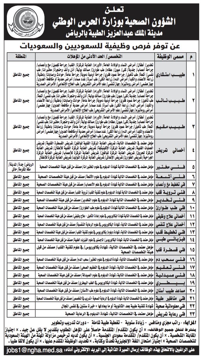 عاجل 384 وظيفة شاغرة في الشؤون الصحية بالحرس الوطني للرجال والنساء 15000 وظيفة