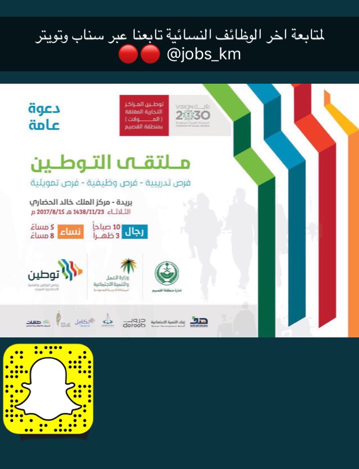 وظائف نسائية On Twitter ملتقى التوطين في القصيم بريدة فرص تدريبية فرص وظيفية فرص تمويلية يوم الثلاثاء في مركز الملك خالد الحضاري وزارة العمل هدف توطين Https T Co 828qeyushg