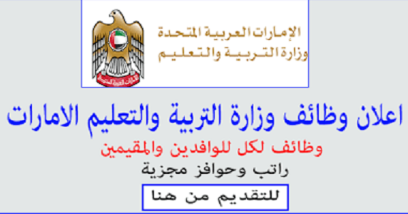 وظائف وزارة التربية والتعليم بالامارات للعام الدراسى 2020 وظائف حكومية بالامارات معلمين ومعلمات وأخصائين والتقديم اون لاين وظائف الامارات والخليج وظائف شاغرة