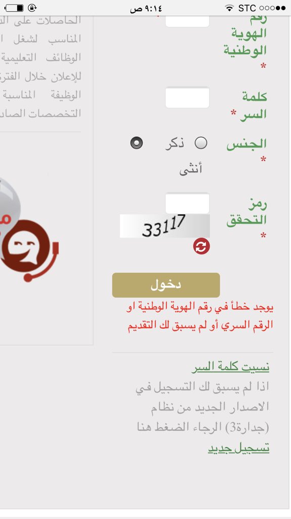 رسالة خطأ في الهوية أو الرقم السري يربك متقدمي جدارة